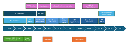 The below diagram is a simplified recruitment timetable for 2026/2027 medical recruitment.