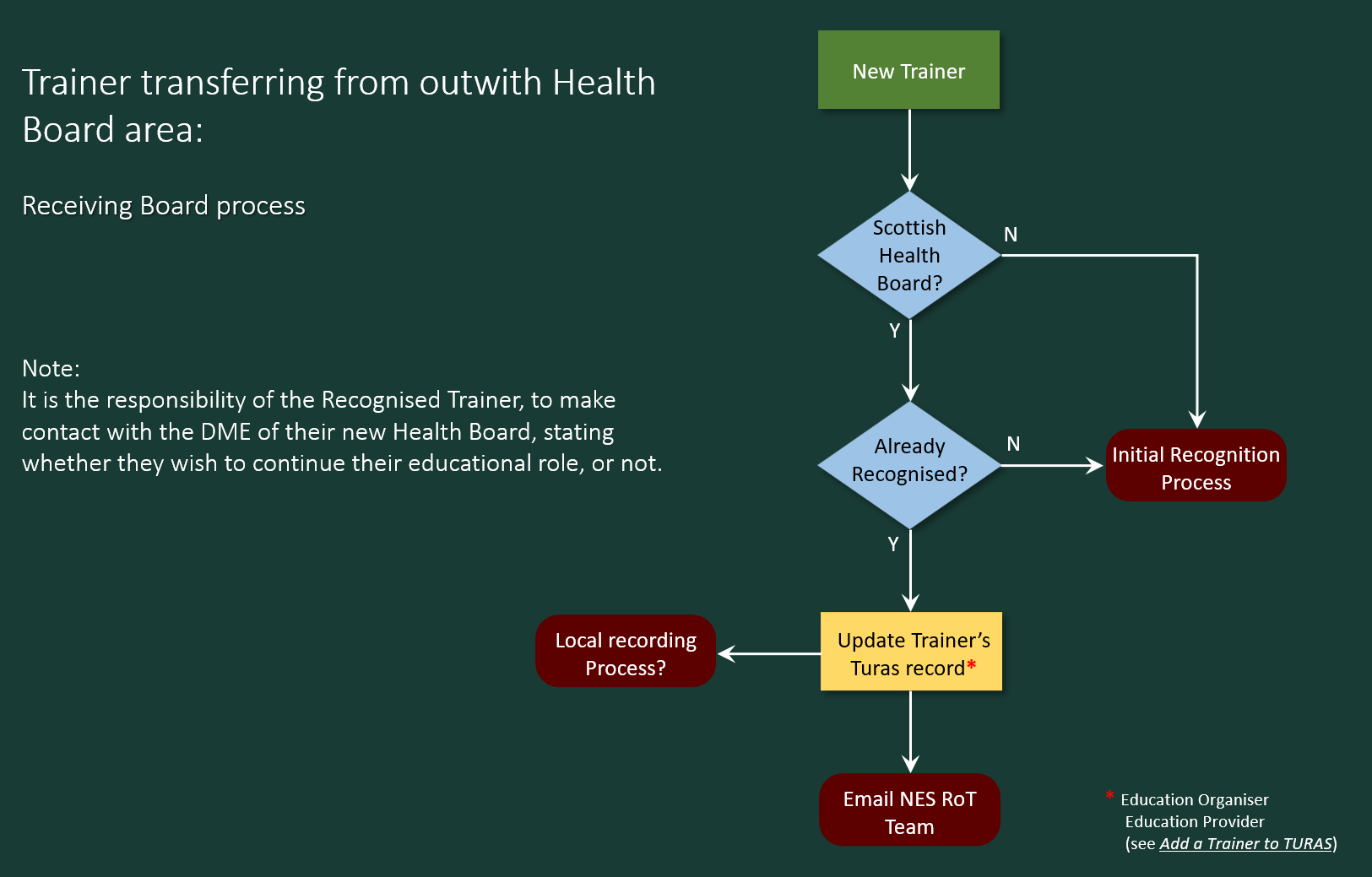 Trainers transferring from another Health Board - process for receiving Health Board